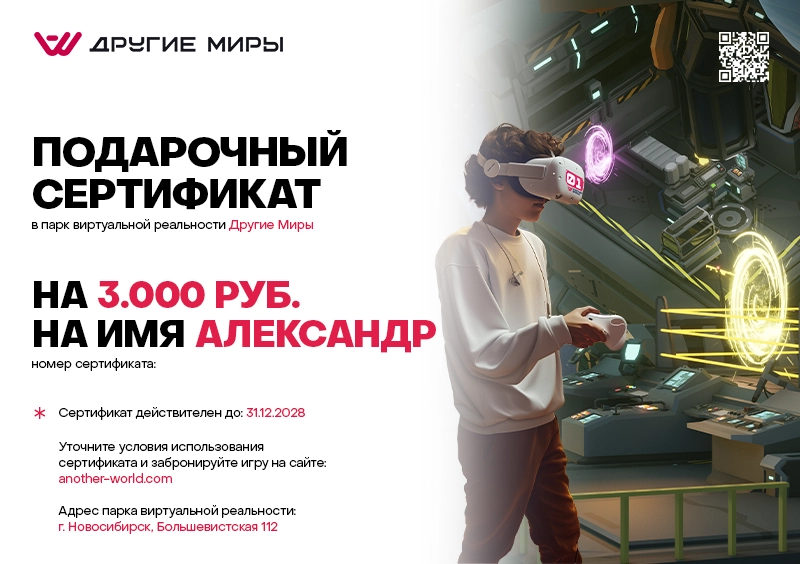 Сертификат можно получить самовывозом на нашей VR-арене.